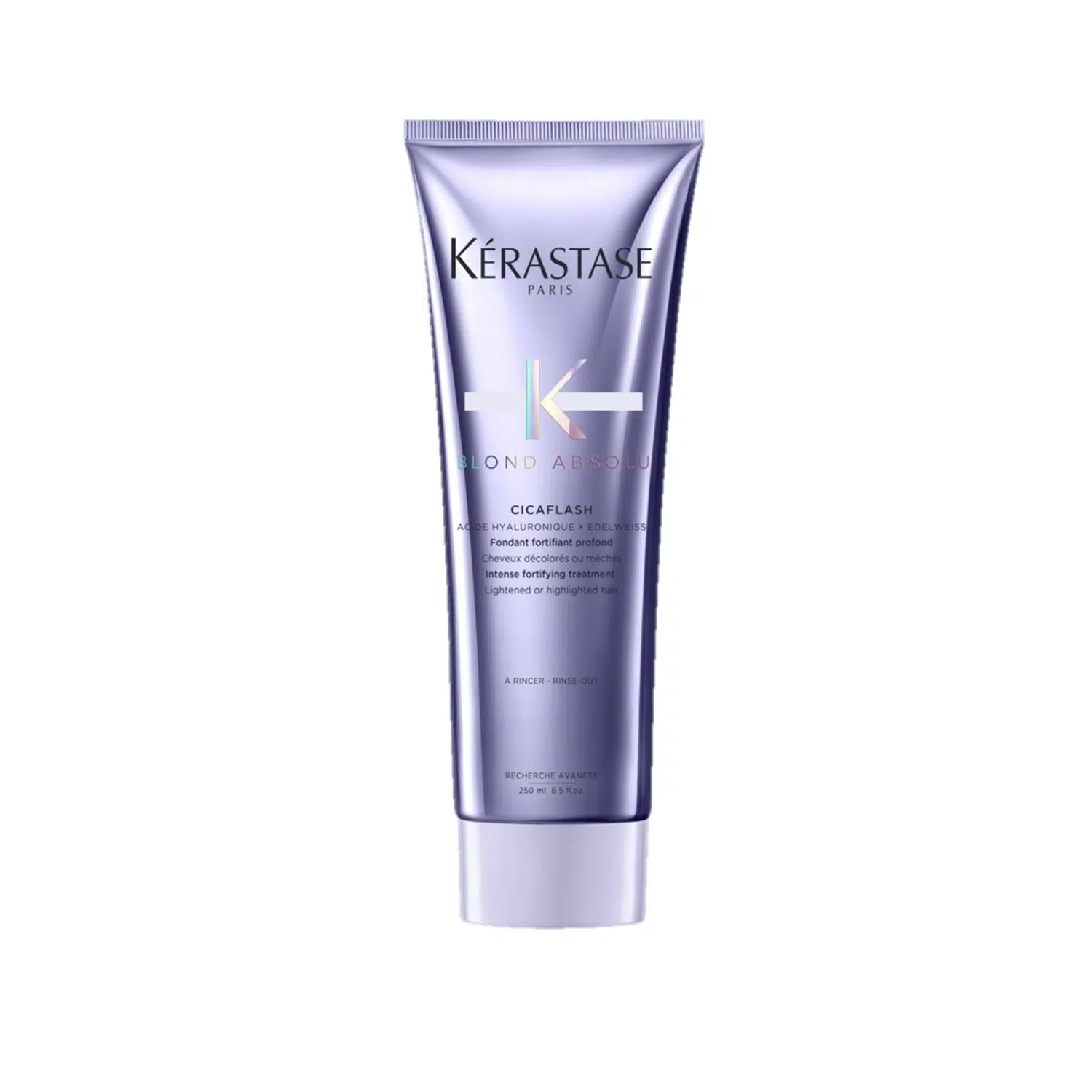 This opalescent milky gel with a soft lavender hue offers the restorative performance of a masque with the lightweight finish of a conditioner. It intensively restores sensitised hair, nourishing the fibre. The combination of Hyaluronic Acid and Edelweiss flower instantly smoothes, strengthens and softens sensitised lightened hair while providing deep nutrition. Ideal for all tones of faux-blonde hair, Cicaflash restores the hair fiber, preventing breakage and erosion. Hair is soft and moisturised while remaining lightweight and luminous.